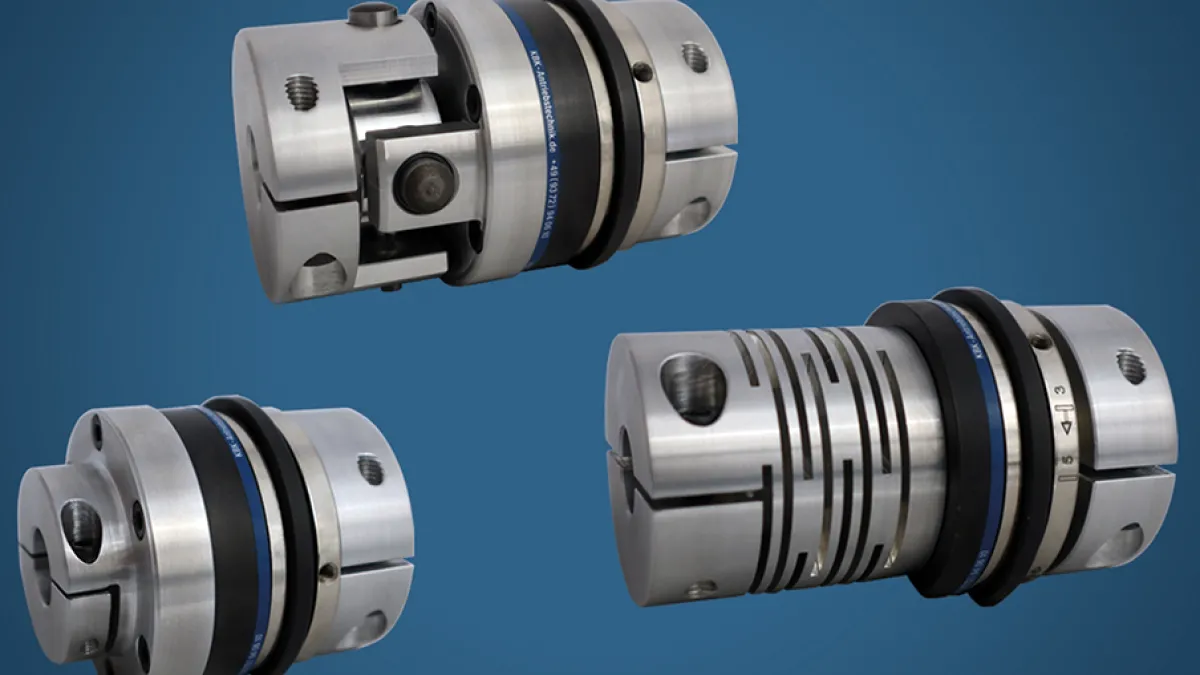 Für hygienisch sensible Umgebungen wurde die „KBK/FSKK“ entwickelt. Diese Sicherheitskupplung kombiniert Überlastschutz mit einer Federsteg- beziehungsweise Schlitzkupplung und eignet sich besonders für Anwendungen, die eine definierte Torsionssteifigkeit erfordern. Ausgestattet mit beidseitigen Klemmnaben ist sie für Drehmomente von 0,2 bis 200 Newtonmeter und Bohrungen von drei bis 42 Millimeter verfügbar. Die FSKK gleicht hohen Wellenversatz aus, arbeitet präziser als Klauen- oder Elastomerkupplungen und zeigt sich gleichzeitig robuster als klassische Metallbalgkupplungen.